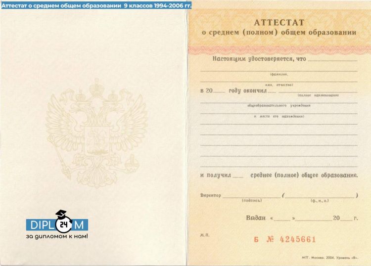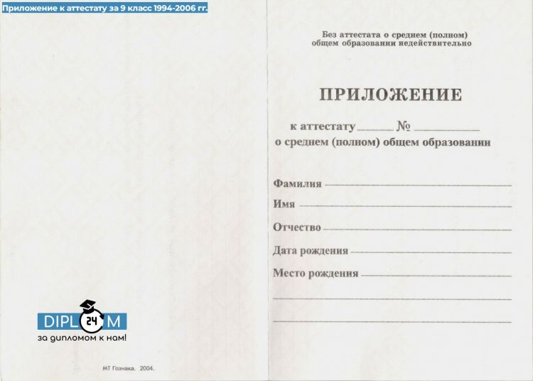Аттестат школы 9 класс 1994-2006 гг.
